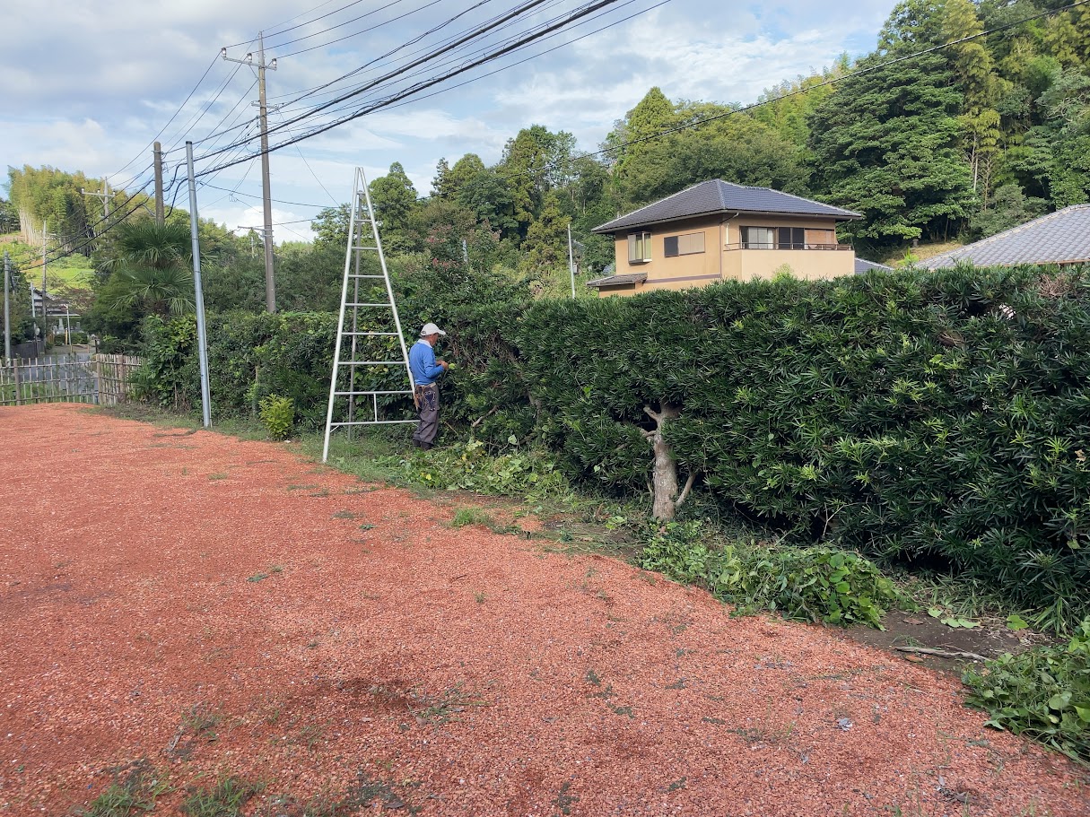 🌿 少しずつ、心地よく。「薬医門の宿」小さな進化中です。 この秋、「薬医門の宿」はまたひとつ進化しました。 9月には、外垣の剪定を行い、庭の表情がぐっと明るくなりました。古木の枝ぶりを丁寧に整えたことで、薬医門の凛とした姿がより引き立っています。