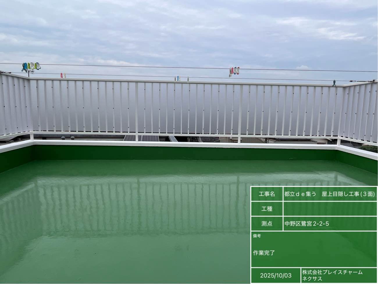 これにより、屋上空間をより快適にお使いいただけるようになり、洗濯物も近隣の目を気にせず干せるようになりました。