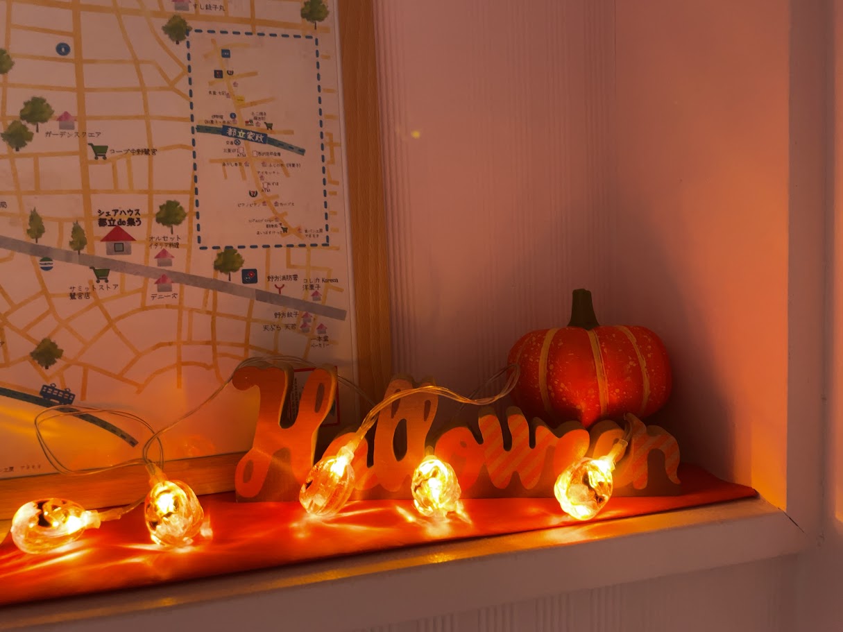秋の訪れを感じるオレンジやカボチャの装飾が、共用スペースをやさしく彩っています。